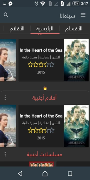 بعد الانتهاء من عملية تثبيت وفتح سينمانا مهكر على الهاتف وتسجيل الدخول، تظهر الكثير من الأقسام التي يمكن للمستخدم أن يتحرك بينها بدون أي عوائق، وهذه الأقسام تبدو كالتالي: