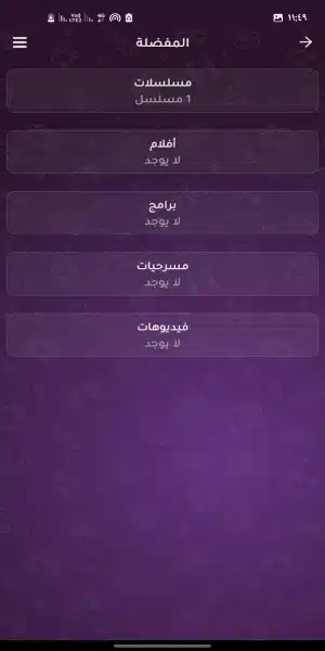 - قسم التفضيلات: يستطيع المستخدم أن يقوم بتمييز المحتوى المفضل لديه، لكي يظهر داخل هذا القسم يمكنه مشاهدته بدون البحث الدائم داخل التطبيق.
