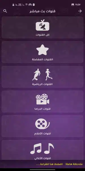 بعد الدخول إلى واجهة التطبيق يظهر عدد كبير من الأقسام المبهرة، التي يمكن للمستخدم أن يستمتع بها بسهولة وبدون أي عوائق، ويختار منها ما يرغب من محتوى، وهذه الأقسام كالتالي: