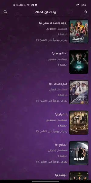 - يهتم التطبيق بعرض مسلسلات رمضان أول بأول، ويقدمها داخل قسم كامل، حيث يتم إضافة جميع الحلقات الجديدة بشكل دائم حتى يستمتع بها المشاهدين، حيث أنها تحصل على متابعة الملايين.