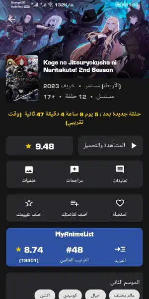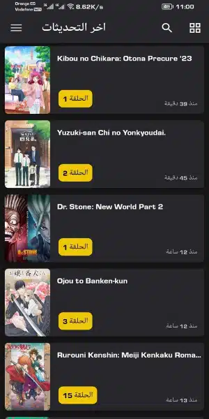 - التطبيق يحتوي على عدد هائل من محتوى الأنمي سواء مسلسلات أو أفلام، يمكن للمستخدم أن يختار المحتوى المفضل لديه بكل سهولة.