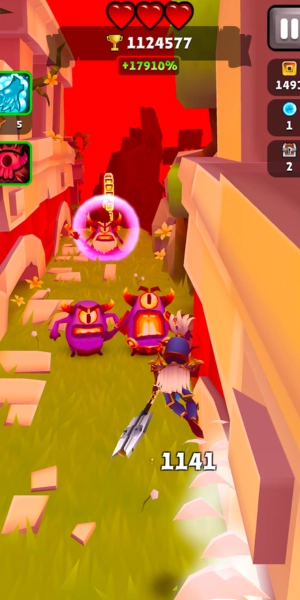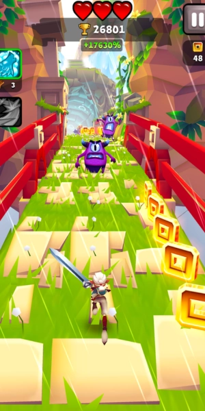 كما يمكن للاعب أن يحصل على عملات ذهبية غير منتهية يمكن استخدامها في شراء أسلحة متطورة وشفرات سحرية تساعد في القضاء على جيش العدو، ويمكن أيضا كسر الأواني التي تظهر على الطريق باستخدام السيف، كما يمكن لهذا البطل أن يقفز على الحائط أيضا، ومع خوض التحديات يتم الترقي والحصول على سيوف أكثر قوة من أجل قتل الشخصيات شديدة الصعوبة وإكمال المهام.