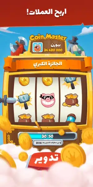 تعد Coin Master مهكرة للاندرويد 2025 لعبة ترفيهية شهيرة على الهواتف الذكية تعتمد على الحظ والاستراتيجية وتتميز بكونها تجمع بين البناء والمغامرات وما عليك هو بناء قريتك وتطويرها لتصبح أقوى وأكثر تقدما و مهاجمة ونهب قرى اللاعبين الآخرين للحصول على موارد تساعدك في بناء قريتك مع الدفاع عن قريتك ضد هجمات اللاعبين الأخرى حيث تعتمد العجلة التي هي العنصر الأساسي في اللعبة وتتيح لك كسب العملات والموارد ويمكنك تدوير العجلة باستخدام عدد معين من النقاط التي تحصل عليها مجانا أو من خلال المهام والمكافآت والعجلة يمكن أن تمنحك عملات ذهبية تستخدمها لبناء قريتك أو ترقيتها وتحصل على مطرقة الهجوم لمهاجمة قرى لاعبين آخرين.