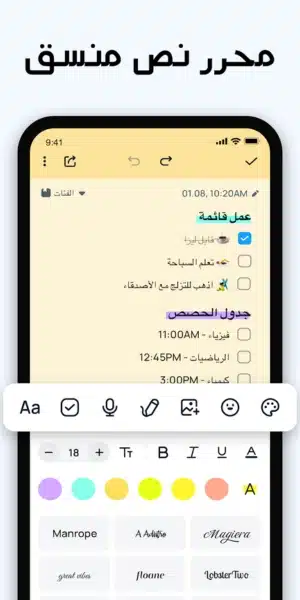 ويتم كتابة كل الكلمات بدون حد معين، ويمكن تنسيق العملية بالشكل المرغوب، مع إضافة صور أو استخدام خاصية البولد التي تساعد في تظليل الخط أو تكبيره، كما يمكن وضع خط تحت الكلمات المرغوبة وأيضا تنسيق الأسطر بشكل جيد داخل تطبيق easy notes مهكر برابط مباشر.