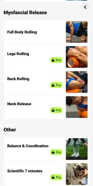 - التطبيق يقدم للمستخدم ما يزيد عن خمسة عشر جلسة استشفاء تم تصميمها من قبل للوصول إلى أفضل شكل ممكن، كما يمكن للمستخدم التدريب مع مدرب صوتي لفهم جميع التعليمات والإجراءات.