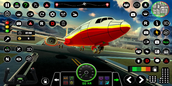 - زر السرعة حيث يوجد زر على الشاشة للتحكم في سرعة الطائرة أي لتسريع الطائرة أو تقليل السرعة.