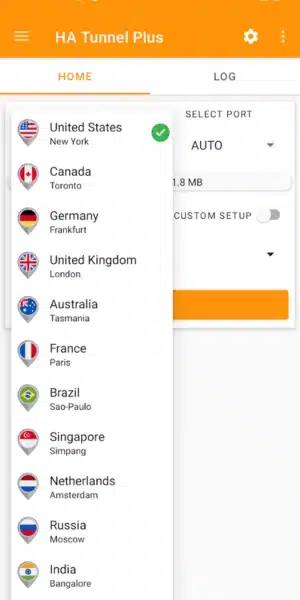 اتش اي تنل بلس مهكر مجانامن ميديا فاير يتم جلبها من ما يزيد عن 20 دولة من كل مكان في العالم، مما يسهل على المستخدم الاتصال بأي منها، ومن هذه الدول تظهر الولايات المتحدة الأمريكية وكندا. - يمكن للمستخدم التحكم في إعدادات ha tunnel plus mod apk بكل سهولة، منها إعدادات الاتصال وإعدادات اللغة والصوت والعديد من الإعدادات الأخرى.
