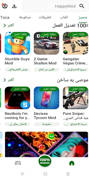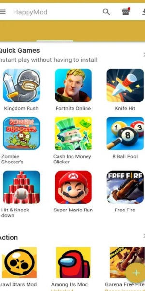 - 3 أقسام واجهة تطبيق HappyMod الذهبي