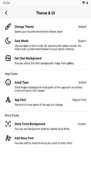 - من أهم الإضافات التي حصل عليها هذا البرنامج المهكر هي إضافة خطوط جديدة نستطيع استخدامها على واجهة التطبيق مع تخصيص الخطوط المستخدمة في الستوري كما يمكن الاختيار بين أكثر من شكل الإيموجي المحادثات.