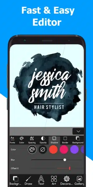 حيث يمكن التعديل على الصورة منها أدوات القص والتدوير وتغيير الألوان وذلك من خلال بعض الأشكال المتواجدة ويمكن تغيير الخطوط المتوفرة منها خطوط عربية، كما يمكن تصميم العلامات التجارية واختيار الصيغة الخاصة بالتطبيق منها صيغة PNG، وبعد تصميم الشعار وتعديله يمكن حفظ الشعار على الهاتف بكل سهولة على الهاتف، ويمكن مشاركته مع الأصدقاء على منصات التواصل الاجتماعي.