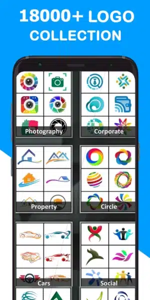 - يقدم logo maker مهكر الاصدار الاخير عدد كبير من الشعارات التي تتضمن فئة مختلفة منها شعارات خاصة بنمط الحياة والألوان والموضة والتطبيقات، ويظهر أيضا أعداد كبيرة من الخلفيات.
