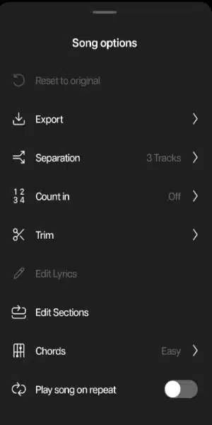 القوائم في تطبيق Moises