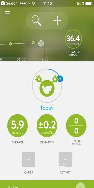 - يستطيع المستخدم من خلال التطبيق الحصول على نسبة HbA1c، وأيضا مراقبة نسبة IAB.