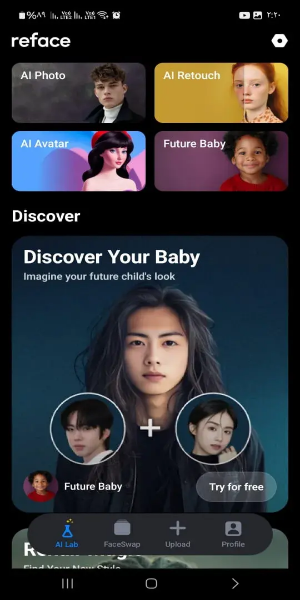 ولكن من الأفضل تسجيل البيانات وإنشاء الحساب داخل تحميل reface مهكر من ميديا فاير، من أجل حفظ أي ملف أو صورة أو فيديو يتم تعديله على الهاتف، ومن هذه البيانات المطلوبة هي اسم المستخدم وكلمة المرور ورقم الهاتف والبريد الإلكتروني، وبعد ذلك يتم الضغط على نجاح إنشاء الحساب حتى يتم الدخول الى البرنامج بسهولة، وتظهر التصميم المبهر للواجهة بالعديد من الأقسام الرائعة والمميزات المبهرة.