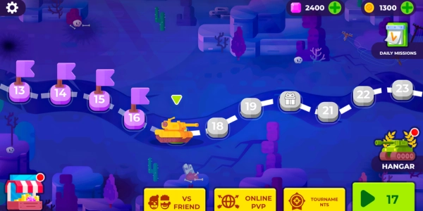 كما يمكن للاعب اختيار دبابة أخرى أو شراء أسلحة وصواريخ للقضاء على الخصم في أسرع وقت ممكن، وتختلف الدبابات حسب القوة والشكل واللون، واللعبة هي عبارة عن مستويات متعددة تبدأ بجولة تعليمية لتعريف اللاعب بكل شيء داخل Tank Stars MOD APK حتى يمكنه الوصول للهدف المرغوب، ويجب على اللاعب بالداخل تحديد قوى إطلاق الصاروخ حتى يتم إطلاقه بشكل صحيح ويتم تدمير دبابة العدو وتحقيق الانتصار في النهاية.