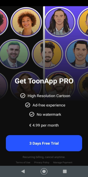 - تطبيق ToonApp MOD APK 2026 يقدم إصدارا مجانيا ولكنه يحتوي أيضا على بعض الميزات المدفوعة مثل الوصول إلى المزيد من الفلاتر المتقدمة أو إزالة العلامات المائية وإذا كنت ترغب في الوصول إلى هذه الميزات يمكنك الاشتراك في النسخة المدفوعة من التطبيق عبر خيارات الشراء داخل تطبيق ToonApp مهكر برابط فوري.