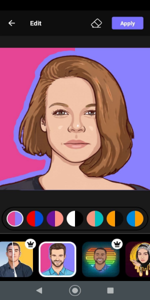 - يمكن للمستخدمين تغيير خلفية الصورة بسهولة مع توفير خيارات متعددة لخلفيات جذابة تتناسب مع النمط الكرتوني.