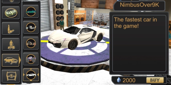- يمكن للاعب بعد تحميل لعبة Vegas Crime Simulator 2 مهكرة اخر تحديث أن يستخدم الأعداد المهولة من الأموال التي لا تنتهي في شراء أي أدوات من المتجر، حيث يستطيع الحصول على أسلحة أو تطوير الأسلحة القديمة وأيضا وسائل الانتقال والقدرات، وكل منها يتواجد داخل المتجر في قسم منفرد، كما يمكن شراء الملابس وتطوير القدرات منها الجري والتحكم والقوة.