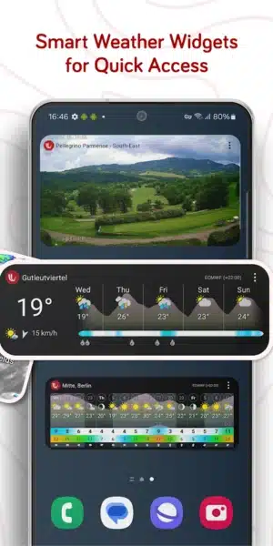العديد من المزايا يمكن مشاهدتها بسهولة عند تحميل هذا البرنامج على الهواتف الذكية جعلته يتم تصنيفه كأحد أفضل تطبيقات الطقس في العالم، وهي كالتالي: