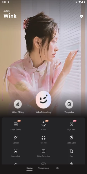 بعد الانتهاء من التسجيل داخل Wink Video Retouching Tool تظهر الواجهة التي تبدو بشكل رائع ومميز وتخطف الأعين إليها، حيث أنها هي الصحفة الرئيسية والتي تسمح للمستخدم بإضافة أي فيديو أو صورة من ذاكرة الهاتف، حيث يتم الاختيار ويتم ظهور الفيديو على الشاشة، وبجواره تظهر الكثير من أدوات تعديل الفيديو داخل wink مهكر apk، منها أداة القص والدمج والنسخ وإضافة موسيقى أو نص كتابي، وكذلك تحديد سرعة التشغيل وعدد من الأدوات الأخرى أيضا.