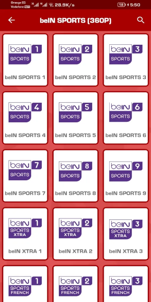 - القسم الخامس: وهو مخصص للقنوات الرياضية وفيها قنوات بن سبورت وغيرها من باقي القنوات الرياضية.