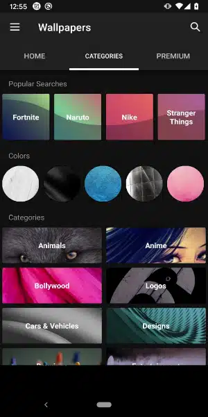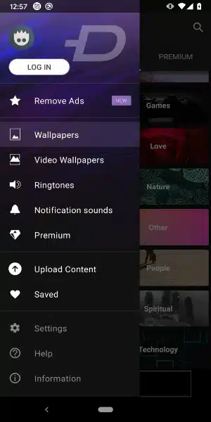- zedge premium apk مهكر يقدم للمستخدم قسم كامل خاص بالخلفيات، حيث يحتوي على مكتبة كبيرة، يمكن للمستخدم أن يختار خلفية الهاتف حسب رغبته، منها صور متنوعة تتضمن صور سيارات وحيوانات وغيرها من الفئات.